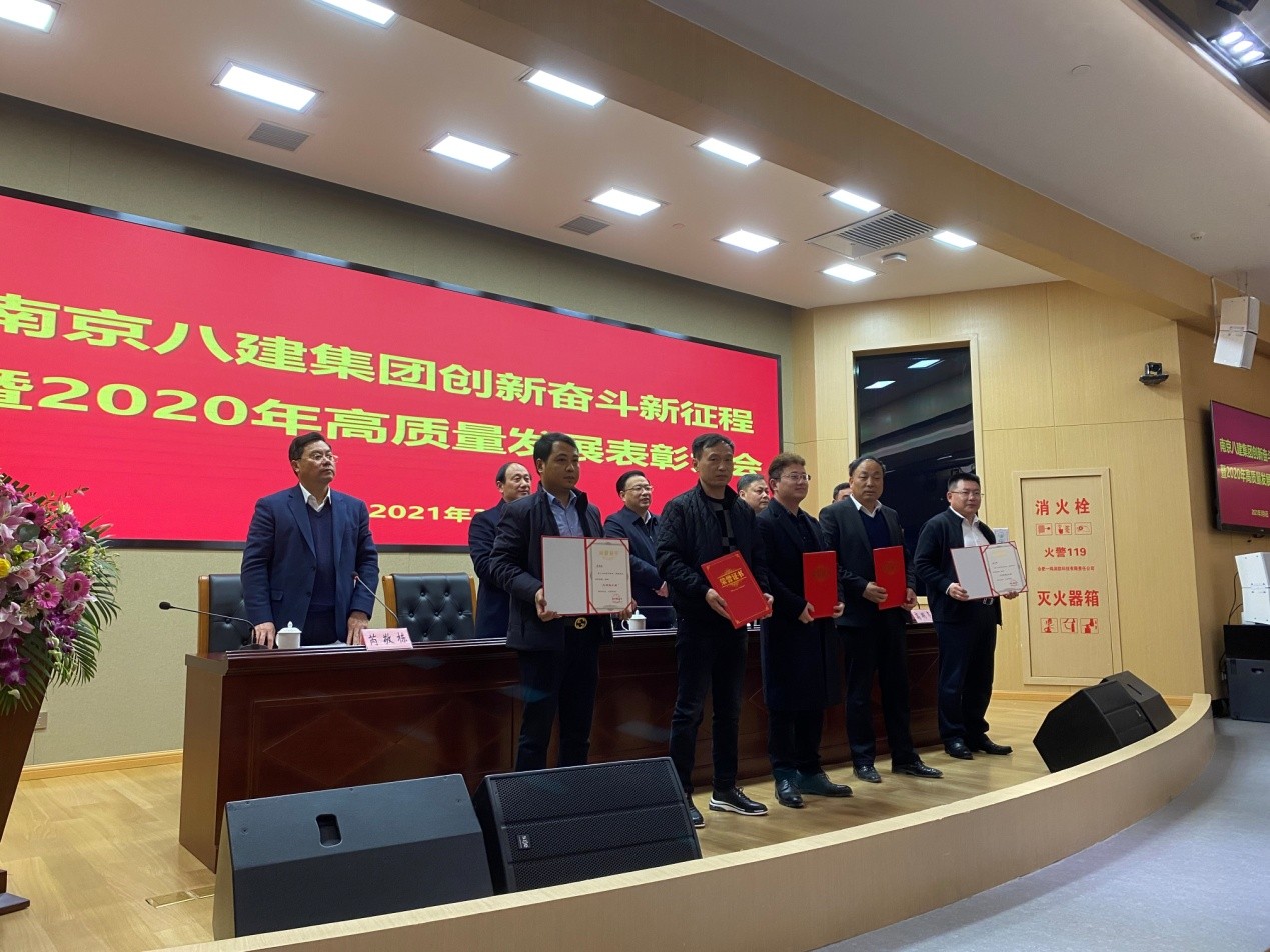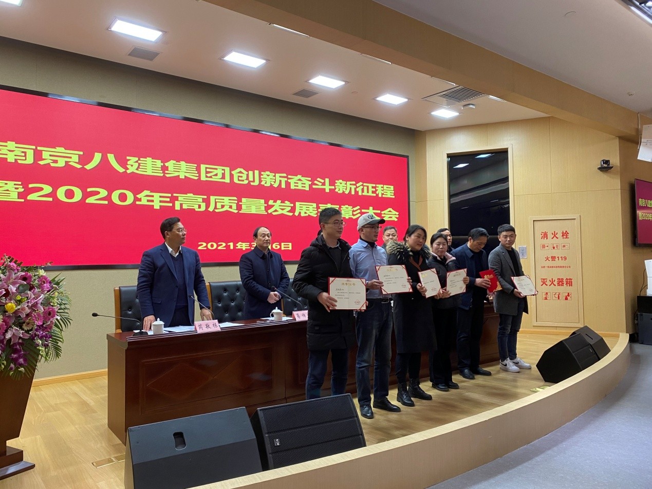 為鼓勵先進,樹立典型,集團于2021年3月6日下午在溧水區(qū)委黨校3號培訓樓一樓會議室召開2020年度高質(zhì)量發(fā)展表彰大會,授予陳德超等11名同志為“優(yōu)秀員工”, 朱劍等8名同志為“優(yōu)秀技術(shù)負責人”,夏友華等7名同志為“優(yōu)秀管理者”,潘彩軍等13名同志為“優(yōu)秀項目經(jīng)理”,市政部等6個部門為“優(yōu)秀團隊”稱號,并予以表彰。號召全體員工向他們學習,為圓滿完成2021年的各項目標任務而奮斗,為八建集團高質(zhì)量發(fā)展作出新貢獻。